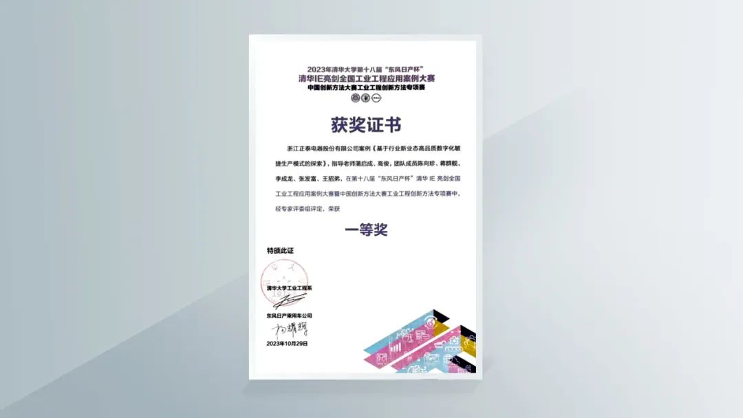 聚焦正泰|正泰电器荣获清华IE亮剑全国工业工程应用案例大奖