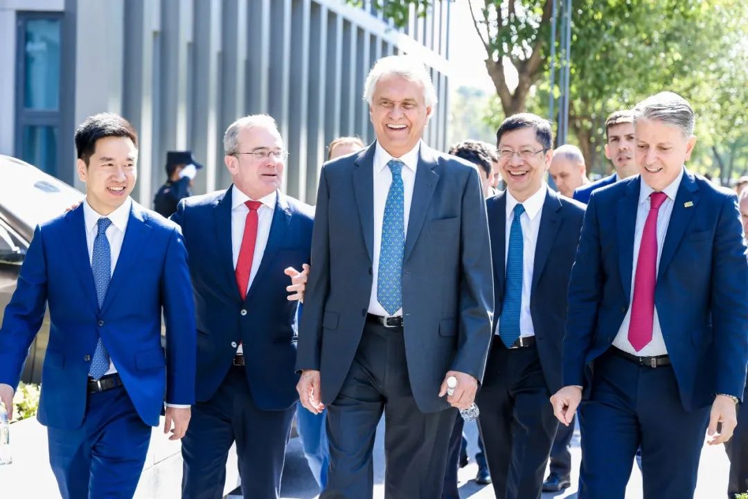11 月 7 日,由巴西戈亚斯州州长 Ronaldo Ramos Caiado 以及戈亚斯州政府代表、企业家代表一行共计 55 人组成的代表团访问正泰,调研正泰智能制造前沿实践,共话智慧城市建设,共议智慧电力,绿色能源,智慧畜牧等相关领域合作,并与正泰签署“智能制造”谅解备忘录。继今年 4 月巴西联邦共和国总统卢拉访华后,巴西戈亚斯州代表团把握发展机遇,借第六届进博会之势参访中国先进制造企业代表。