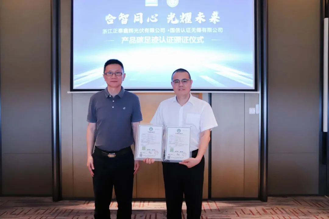 此次签约仪式为正泰鑫辉与无锡检研院所属的光伏中心(CPVT)、国家储能质检中心(CEST)、国信认证无锡有限公司(CBC)达成战略合作。会上,正泰鑫辉获颁国内首张接线盒连接器产品CBC碳足迹证书。