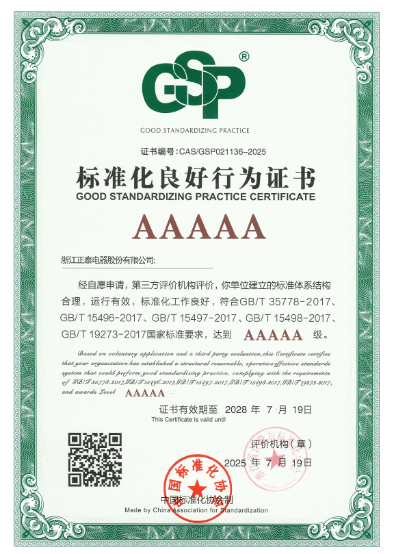 “AAAAA级标准化良好行为企业”代表着国内企业标准化管理的最高水平。此次成功获评,不仅是对正泰电器长期坚持高标准、严要求推进标准化建设的权威肯定,更为上下游产业链树立了可借鉴的范本,有力助推行业整体规范化水平的提升。